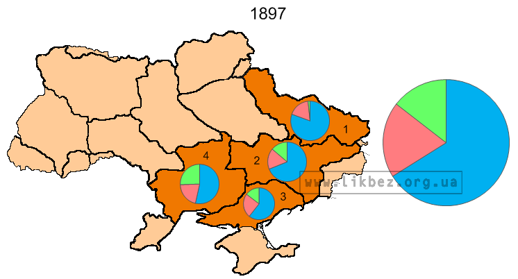 Всеобщая перепись 28 января 1897 года была первой и единственной в истории Российской империи. Хотя вопрос о национальности не поднимался, перепись фиксировала распределение населения по признаку родного языка. Важно, что несмотря на официальную концепцию «триединого русского народа» (который якобы состоял из «великороссов», «малороссов и «белорусов»), перепись учитывала отдельно носителей русского (великорусского) и украинского (малороссийского) языков. Результаты переписи продемонстрировали, что носители украинского языка составляют большинство населения девяти губерний империи. Эти губернии рассматривались как базовые для создания автономии представителями украинского национального движения на гране ХІХ и ХХ веков (смотри: «Административно-территориальное деление украинских земель в Российской империи на 1914 год», «Украинский вопрос (1914)», «Грушевский. Какой автономии и федерации хочет Украина», «Украинский национальный конгрес-съезд 6–8 апреля 1917 г.», III Универсал Центральной Рады).