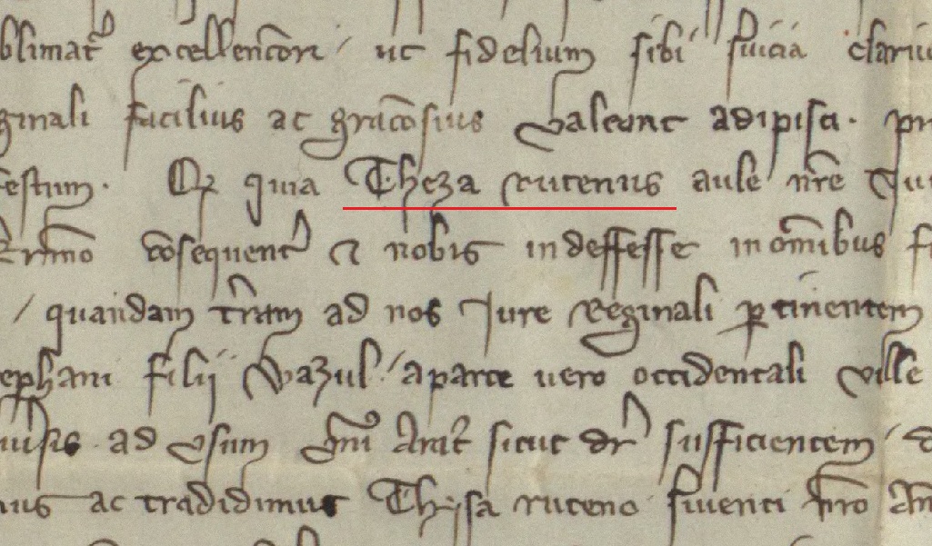 Фрагмент акта венгерской королевы Марии с упоминанием придворного Тезы Руського (1312 г.)