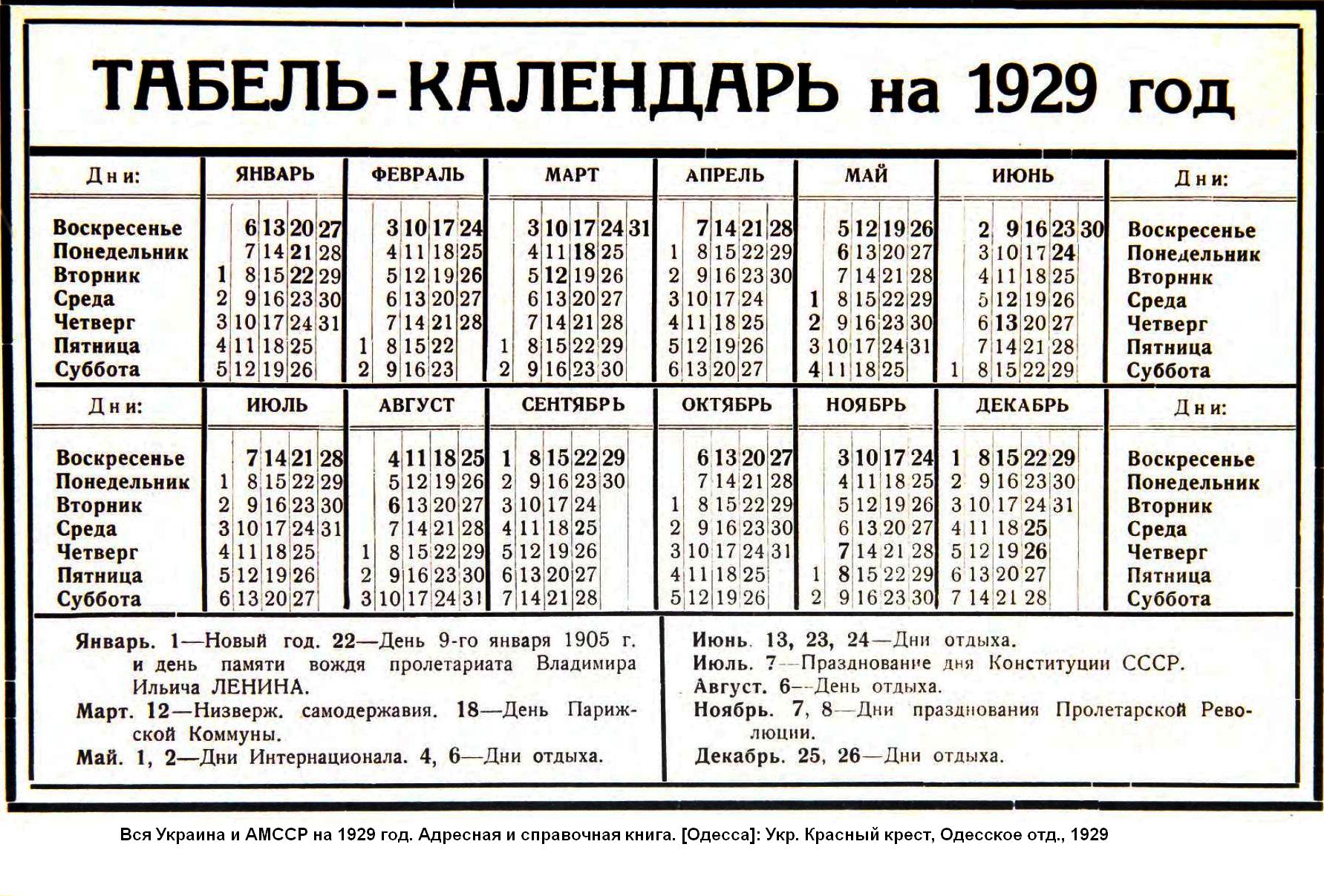 Сухий підсумок міжвоєнного періоду виявився таким: на початку більшовицького владарювання (1918 р.) – шістнадцять неробочих днів, на кінець – шість. В обох випадках був один щотижневий вихідний.