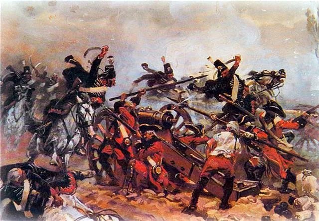Атака прусських гусар на російську батарею у битві під Гросс-Егерсдорфом у 1757 році (Семирічна війна). Картина В.Коссака.
