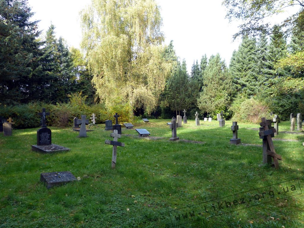 На невеличкій ділянці землі, обсадженій по периметру деревами та кущами, поховані українські, російські, польські емігранти – колишні мешканці альтенгайму. “Козацькі” хрести на могилах українців із викарбуваними на хрестах тризубами помітні одразу.