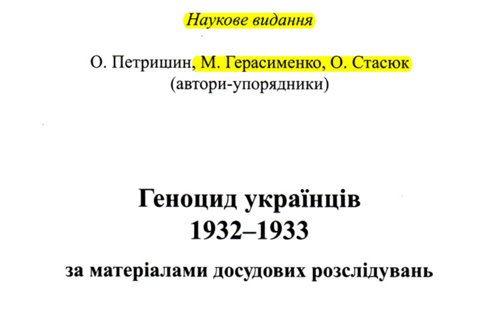 А 79 років потому, у столиці вже незалежної України, побачило світ 520 сторінкове видання – «Геноцид українців 1932–1933 за матеріалами досудових розслідувань / Упоряд: О.Петришин, М.Герасименко, О.Стасюк. – Київ: Видавництво Марка Мельника, 2021», автори якого – заслужені юристи та історики, доктори та кандидати наук – своїми підписами засвідчили нехтування елементарними правилами як у висвітленні доробку своїх попередників, так і у підрахунку втрат від злочинів комуністичного режиму. Тобто знехтували тими елементарними правилами, які і дозволяють називати ту чи іншу працю науковою. Якщо все залишити як є та рекомендувати цю працю до використання, то можна стверджувати про спробу покласти край науковому осмисленню питання про кількість втрат українців від голоду в роки Голодомору.