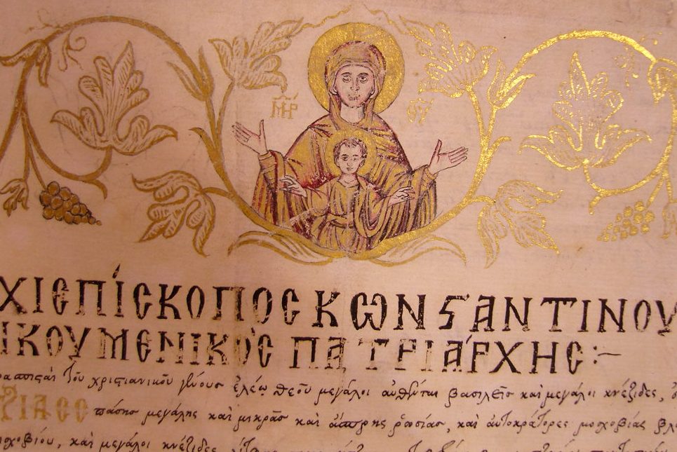 Фрагмент листа константинопольського патріарха Діонісія ІV московським царям Іоану та Петру Олексійовичам про Київську митрополію, травень 1686 р. Зберігається у Російському державному архіві давніх актів. Фото надане Вірою Ченцовою.